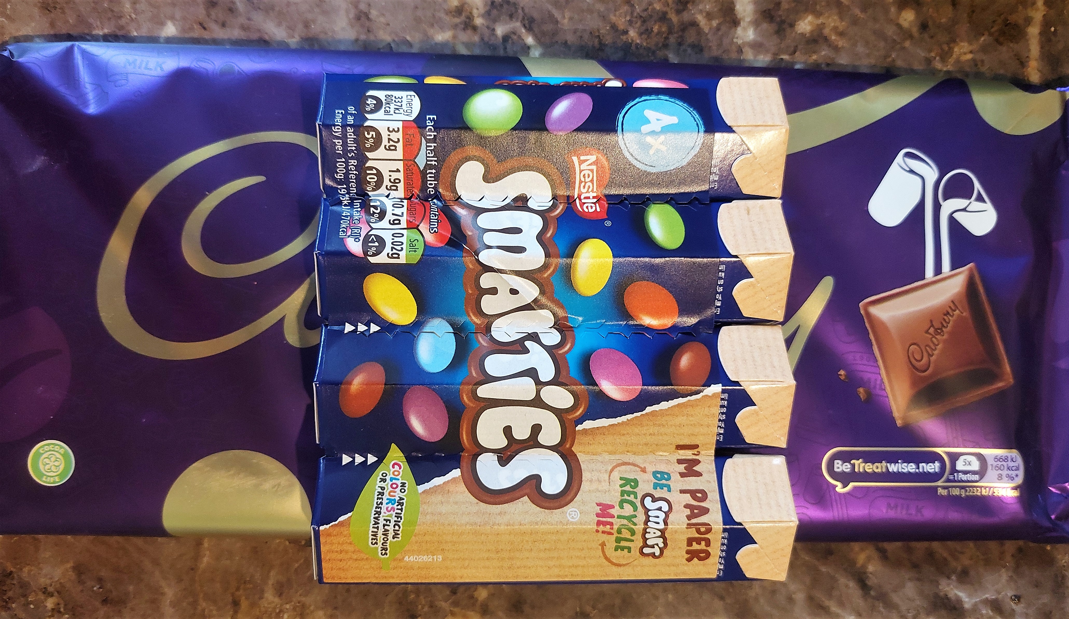 - I used 3 tubes of smarties (but any non branded hard shell chocolates will do)